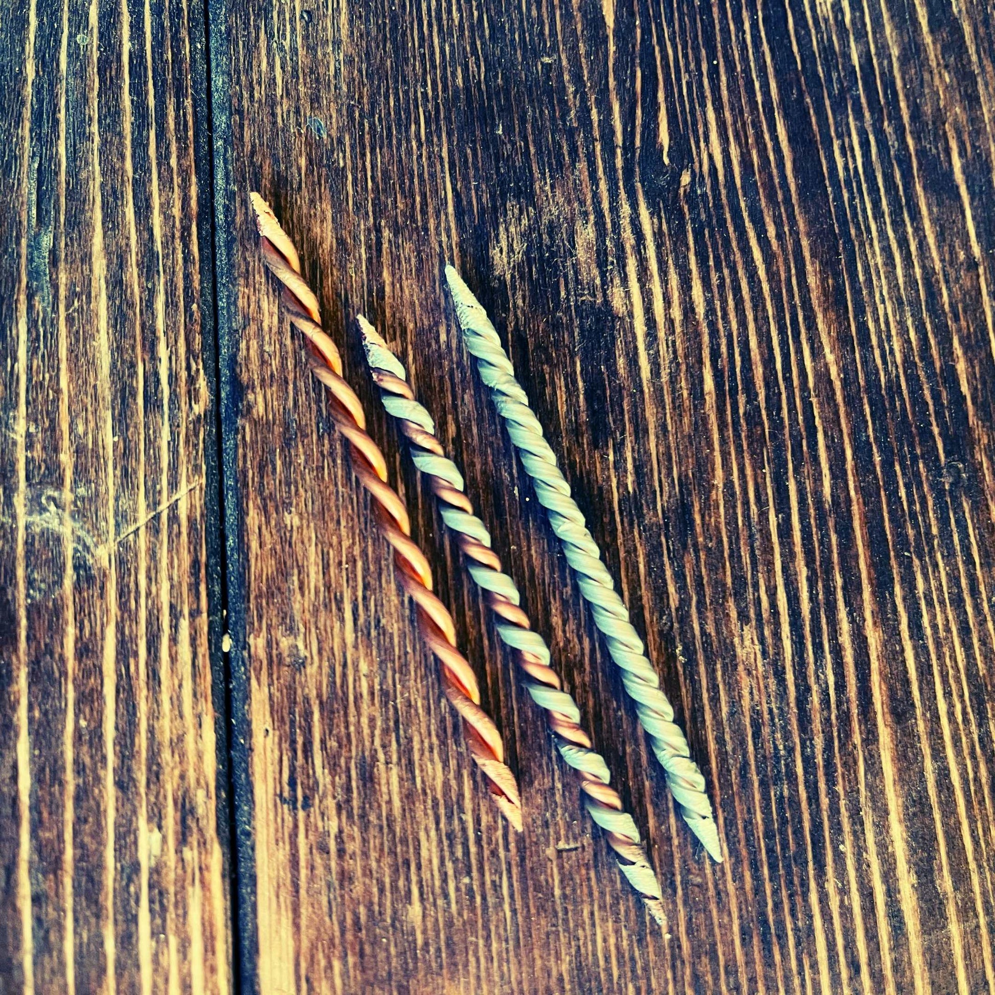 copper and silver colored twisted