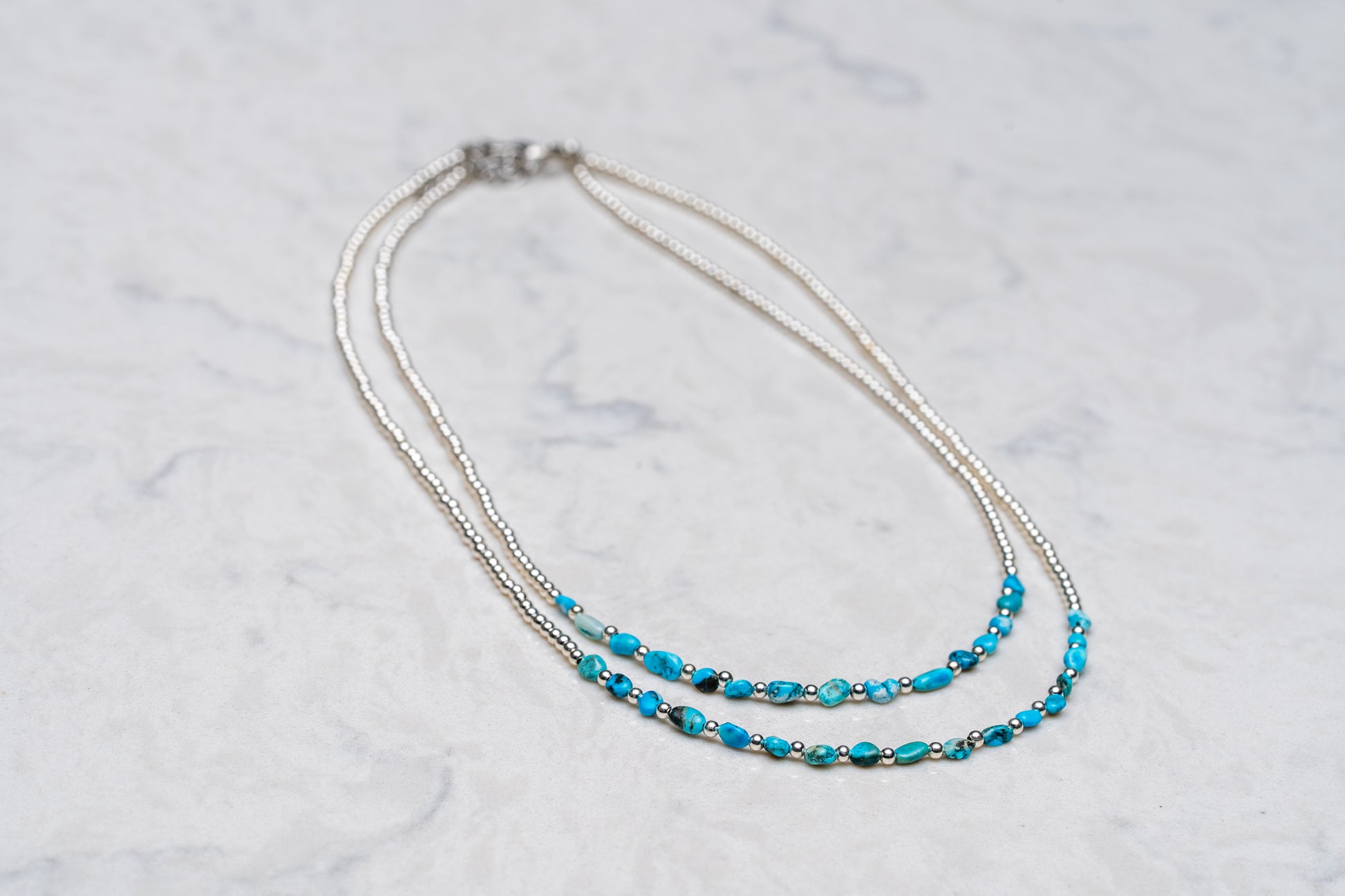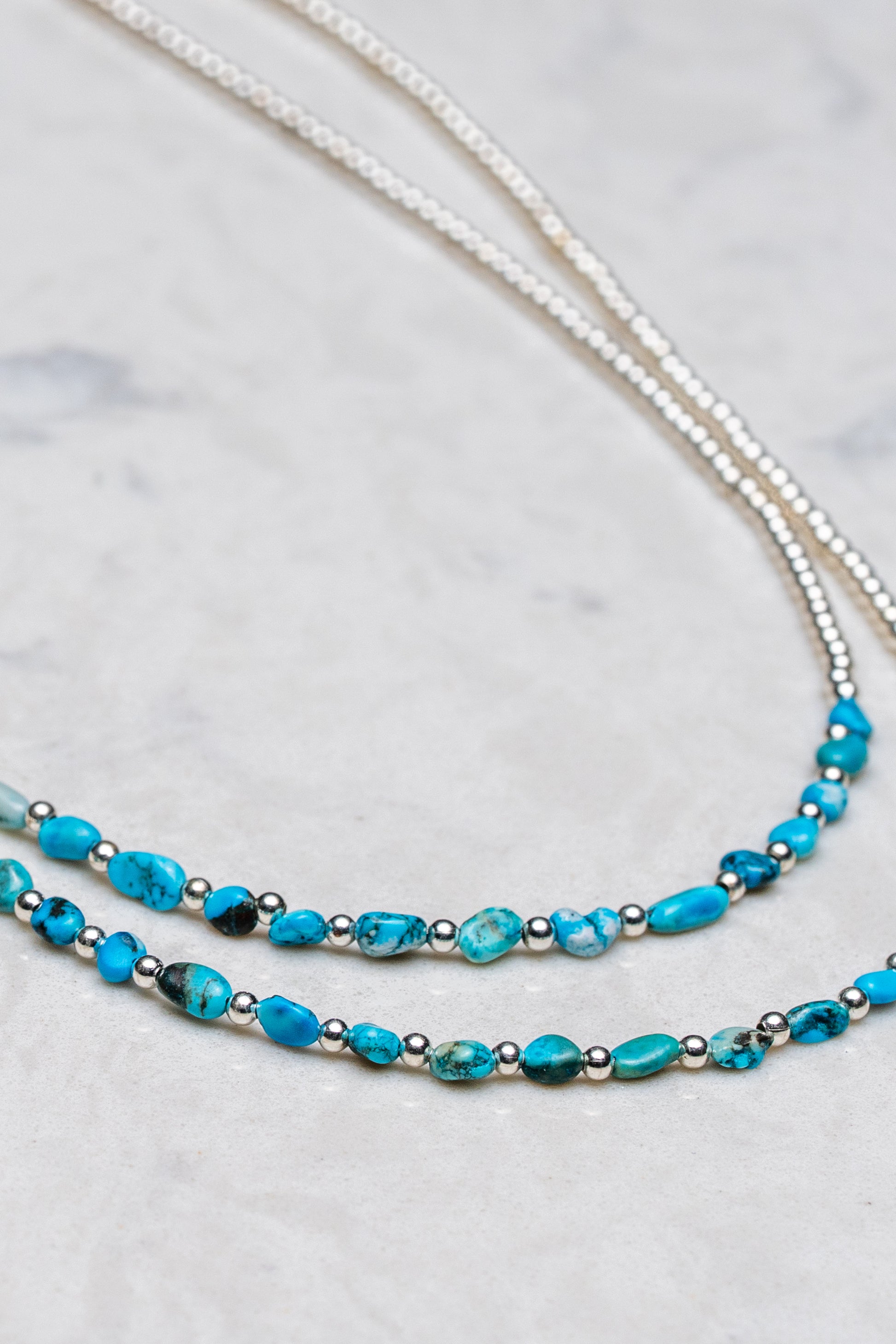 Silver beads with turquoise accent. This looks great stacked with the rest of the Gilley's collection