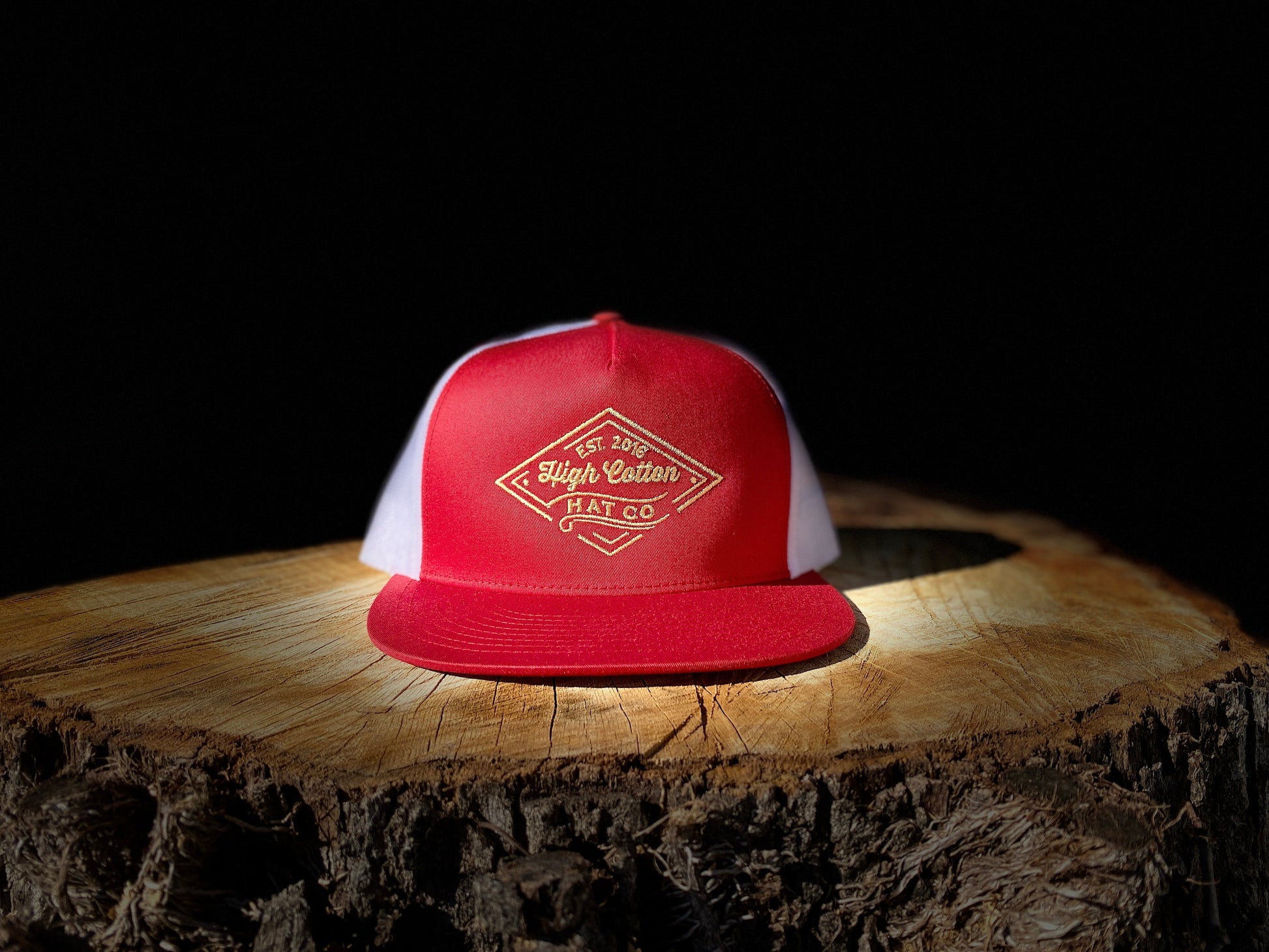 Fabric: 60/40 cotton/poly front panels; 100% polyester mesh back panels