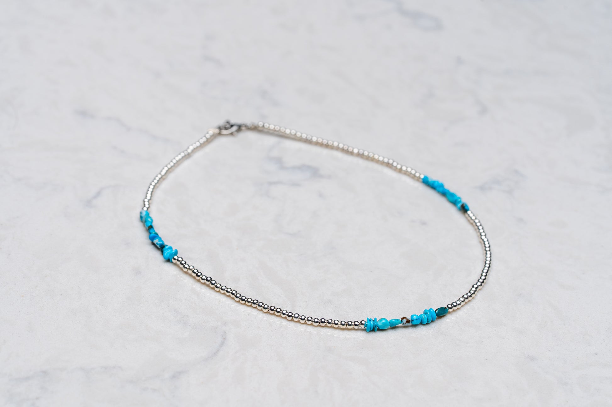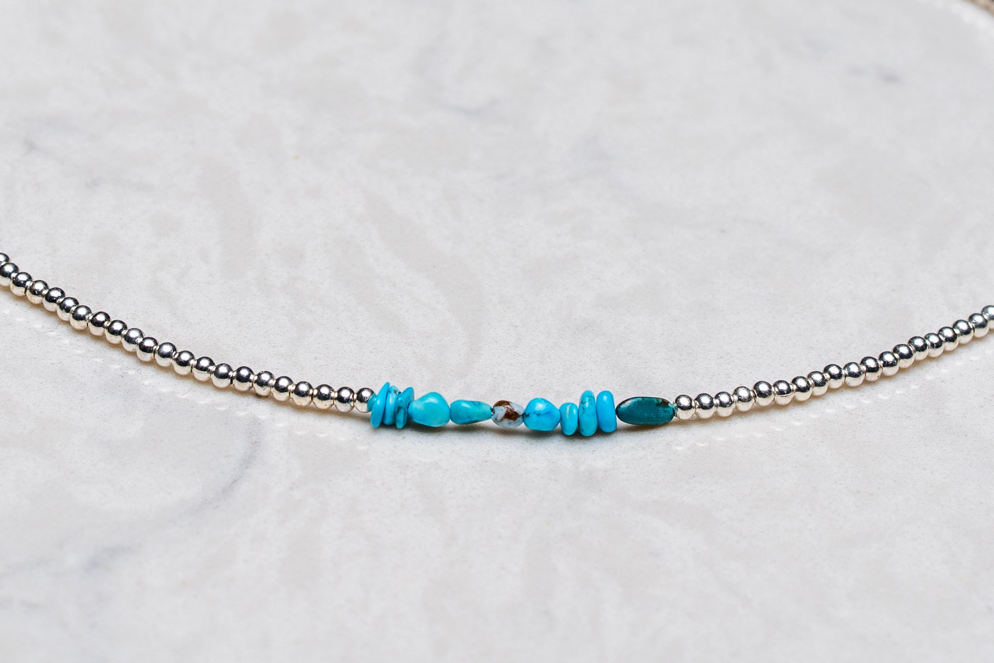 Silver beads with turquoise accent. This looks great stacked with the rest of the Gilley's collection.