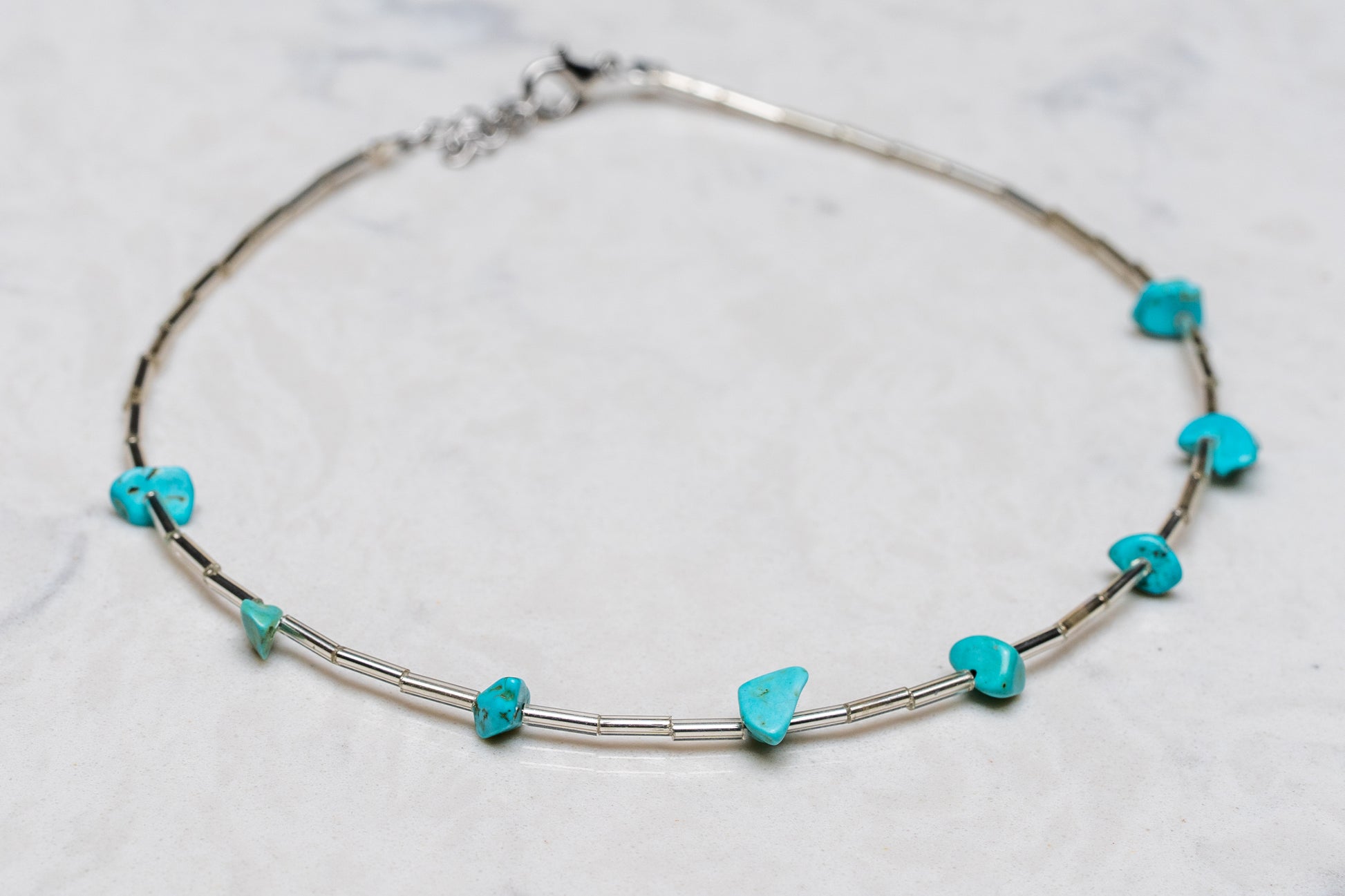 Turquoise Silver Beaded Choker